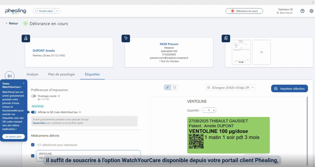 L’option Watchyourcare dans Posolog.IA est un abonnement séparé activable depuis votre portail Phealing. Vous n’avez rien à faire d’autre qu’à cocher cette option, valider, et commencer à utiliser le service immédiatement !