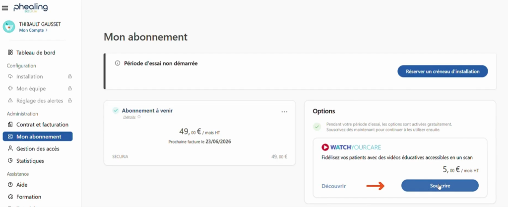 Pour activer l’option Watchyourcare dans Secur.IA ou Posolog.IA, il vous suffit d’ajouter cette option depuis votre portail Phealing.